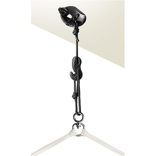 Il gancio brevettato SmartHook rende facilissima la regolazione della sedia pensile. Grazie al suo rinforzo in fibra di vetro il gancio è stabile, in grado di sostenere un carico e particolarmente resistente.