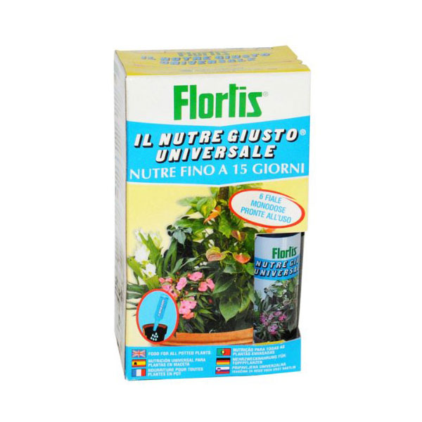 Un’ottimo integratore per apportare il giusto nutrimento alle tue piante verdi e da fiore in vaso per garantirne una crescita sana e omogenea. Il prodotto non deve essere diluito e si applica direttamente alla pianta in vaso tramite il flacone che immerso nel terreno rilascia in modo lento e costante il nutrimento per due settimane.   Il nutrimento universale Flortis può essere utilizzato durante tutto l’anno.