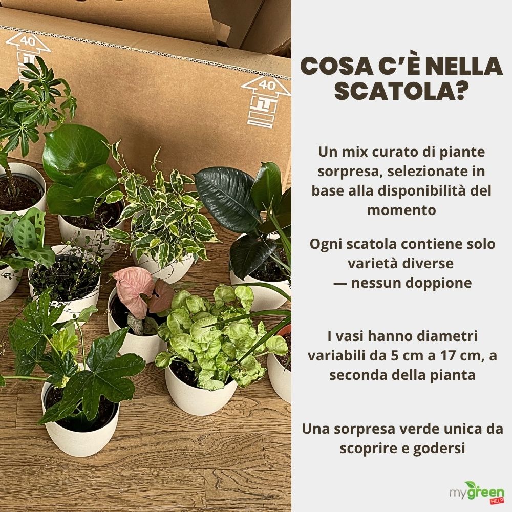 • 6 piante a sorpresa, con vasi di diametro variabile tra 5 e 17 cm.
