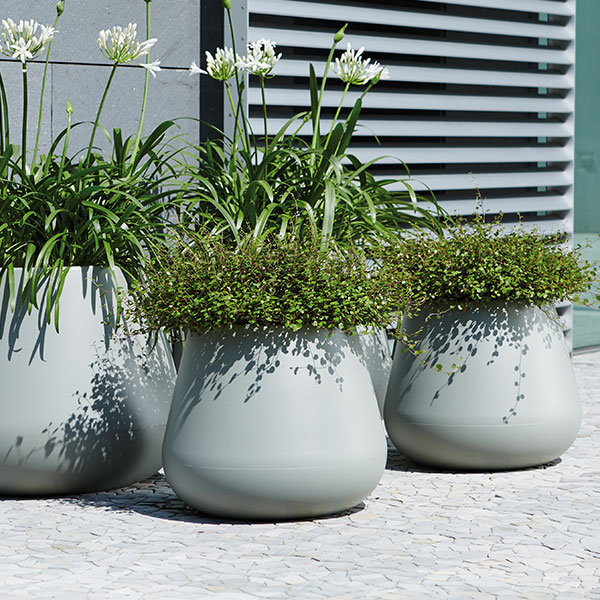 Presenta un look solido ed elegante caratterizzato da curve morbide e rotonde, si presta particolarmente bene ad ospitare piante alte per conferire una maggiore eleganza agli ambienti esterni ed interni.