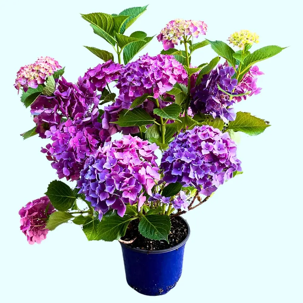 Hydrangea macrophylla. Arbusto deciduo, dal portamento arrotondato e ramificato. Foglie grandi, ovali, verde intenso, con margine seghettato. Fiori riuniti in infiorescenze globose o appiattite, molto decorative. Colori dal rosa al blu, influenzati dal pH e dall’alluminio del suolo. Fioritura estiva, abbondante e prolungata. Raggiunge in genere 1–1,5 m di altezza e larghezza. Crescita moderata, con buona longevità in giardino se coltivata in condizioni idonee.