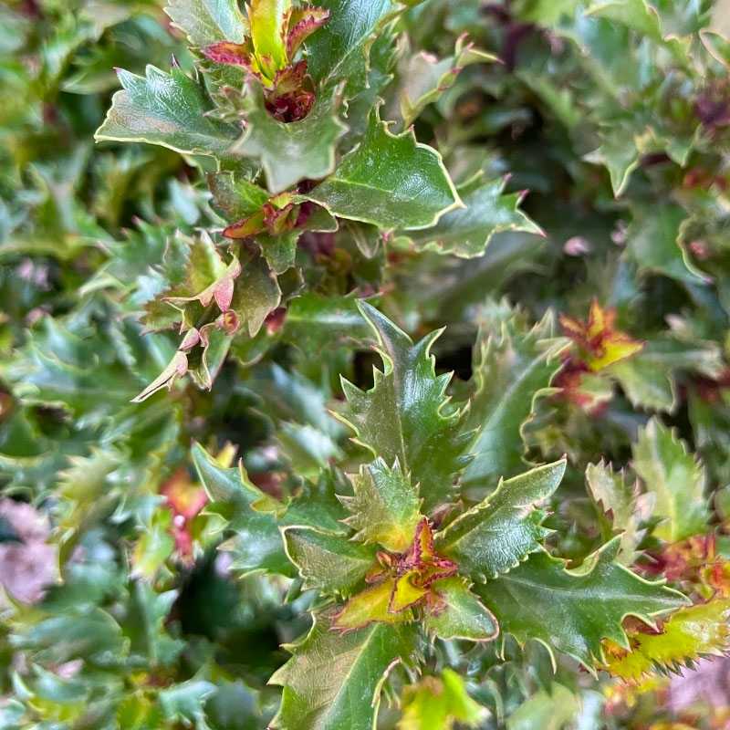 Ilex little rascal è un agrifoglio nano, a crescita lenta e portamento compatto, quasi sferico. Raggiunge in genere 50–80 cm di altezza e larghezza. Il fogliame è piccolo, denso e lucido, con foglie ovate e leggermente dentate. Il colore è verde scuro, con tonalità bronzee o rossastre nei periodi freddi. I fiori sono molto discreti, biancastri, riuniti in piccoli gruppi primaverili, poco ornamentali. È apprezzato soprattutto per la struttura ordinata e la tessitura fine delle foglie.