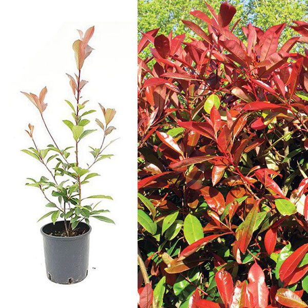 Il kit da 15 metri di siepe comprende 21 piante di Photinia Red Robin alte 80-100 cm, da disporre a 60-80 cm di distanza per ottenere una copertura uniforme e compatta.