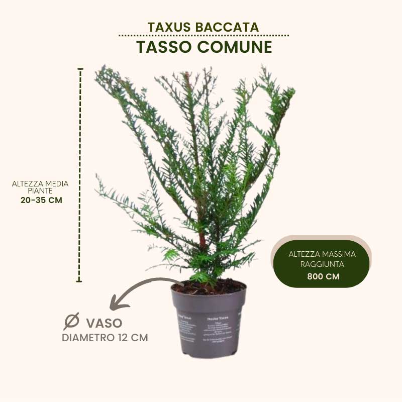 Conifera sempreverde a crescita lenta e molto longeva, eccezionalmente tollerante all’ombra e alle potature. Non ha fioritura appariscente: in primavera compaiono piccoli coni, e in autunno sulle piante femminili maturano arilli rosso vivo ornamentali. Ideale per siepi e bordure formali, si presta anche alla coltivazione in vaso per terrazzi riparati.